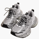 Te Chunky Mesh Sneakers dla kobiet łączą komfort i styl w nowoczesnym designie. Lekka, oddychająca siateczkowa powierzchnia zapewnia optymalny komfort noszenia, podczas gdy modna, masywna podeszwa stawia sportowe i stylowe akcenty. Idealne na długie spacery, treningi lub jako modny akcent na co dzień. Szary kolor sprawia, że buty są wszechstronnie dopasowane do każdego stroju!