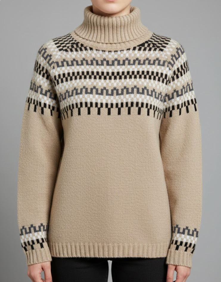 Wykonany z najwyższej jakości islandzkiej wełny, sweter Katarzyna gwarantuje nie tylko ciepło, ale także doskonałą oddychalność. Klasyczny golf skutecznie chroni przed zimnym wiatrem i nadaje całości elegancki charakter.