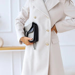 Z naszym nowym płaszczem wełnianym jesteś gotowa na sezon! Jego elegancki, dwurzędowy design sprawia, że jest prawdziwą ozdobą każdej garderoby. Wykonany z miękkiej, wysokiej jakości wełny, ten płaszcz nie tylko wygląda stylowo, ale także jest niesamowicie wygodny. Idealny na spacery po mieście lub w drodze do pracy - must-have, aby wyglądać ciepło i wspaniale!