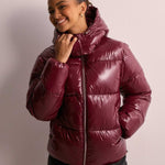 Elise | Lśniąca pikowana kurtka damska z odpinanym kapturem