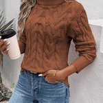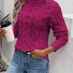 Agnieszka | Zimowy damski sweter z golfem o warkoczowym splocie