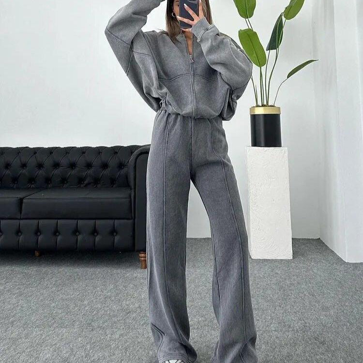 Wygodny Luksusowy Damski Dres z Zamkiem i Kapturem
