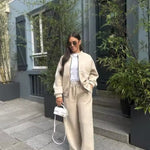 Zestaw dresowy Lia to must-have dla kobiet, które chcą połączyć komfort z stylem. Dzięki luźnemu krojowi i miękkiej tkaninie, ten zestaw jest niezwykle wygodny, a minimalistyczny design zapewnia modny wygląd. Niezależnie od tego, czy relaksujesz się w domu, masz luźny dzień, czy wybierasz się na spacer z kawą na wynos, w zestawie Lia będziesz wyglądać stylowo bez wysiłku. Wszechstronny strój, który idealnie nadaje się na zimne dni 2025 i jest niezbędnym dodatkiem do Twojej garderoby.