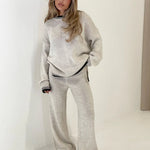 Noah to niezbędny element na tę zimę! Bądź stylowy, jednocześnie czując się przytulnie. Zestaw składa się z miękkiego, dzianinowego topu i długich spodni, które można połączyć z ulubionymi Uggami lub sneakersami, aby uzyskać casualowy wygląd. Niezależnie od tego, czy spędzasz dzień w domu, czy wychodzisz, to jest to, co chcesz nosić!