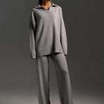 Zestaw Lounge dla Dams z Szerokimi Spodniami i Oversize Polo Swetrem