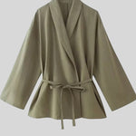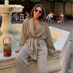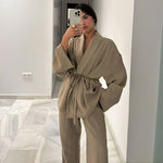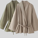 Podnieś swój styl z naszym kompletem lnianym MERAL! Ten uniwersalny kimono jest idealne na różne okazje i ma piękne detale. Pozostań wygodny i elegancki w naszym niezbędnym zestawie.